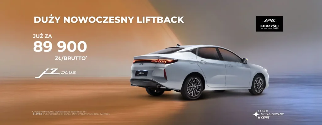 Sylwetka inspirowana kształtem rekina nadaje samochodowi sportowy charakter i poprawia aerodynamikę. Dynamiczne linie i dopracowane detale łączą moc z elegancją, tworząc stylistykę, która wyróżnia się na każdym kroku. To pierwszy liftback marki JAC na polskim rynku – nowoczesny i wyrazisty.
