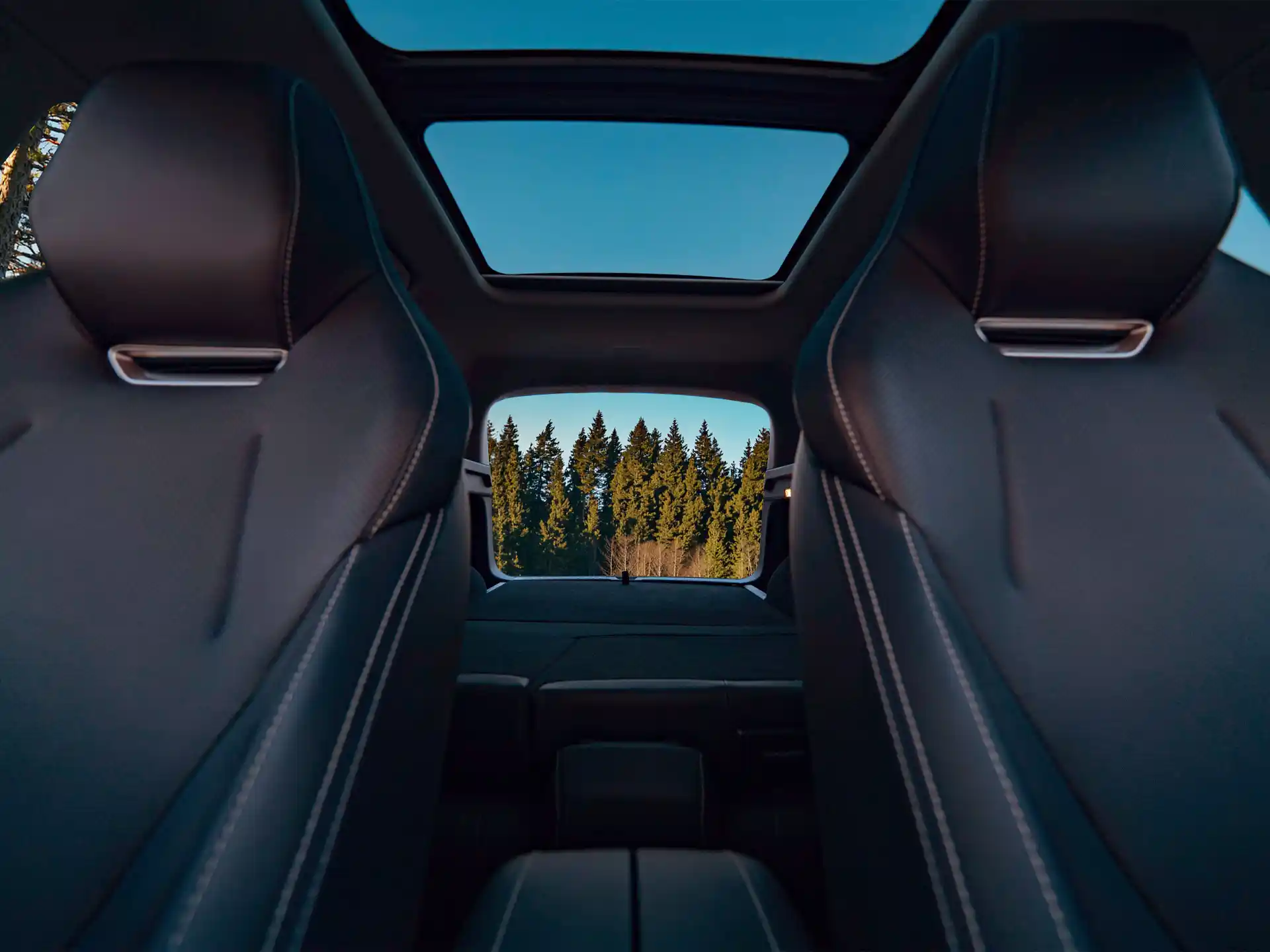 Panoramiczny dach wpuszcza do wnętrza mnóstwo naturalnego światła, tworząc przestronną i przyjemną atmosferę dla wszystkich pasażerów. Elektryczne sterowanie pozwala łatwo dopasować jego otwarcie do aktualnych warunków. Każda podróż staje się dzięki temu jeszcze bardziej komfortowa i pełna wrażeń.