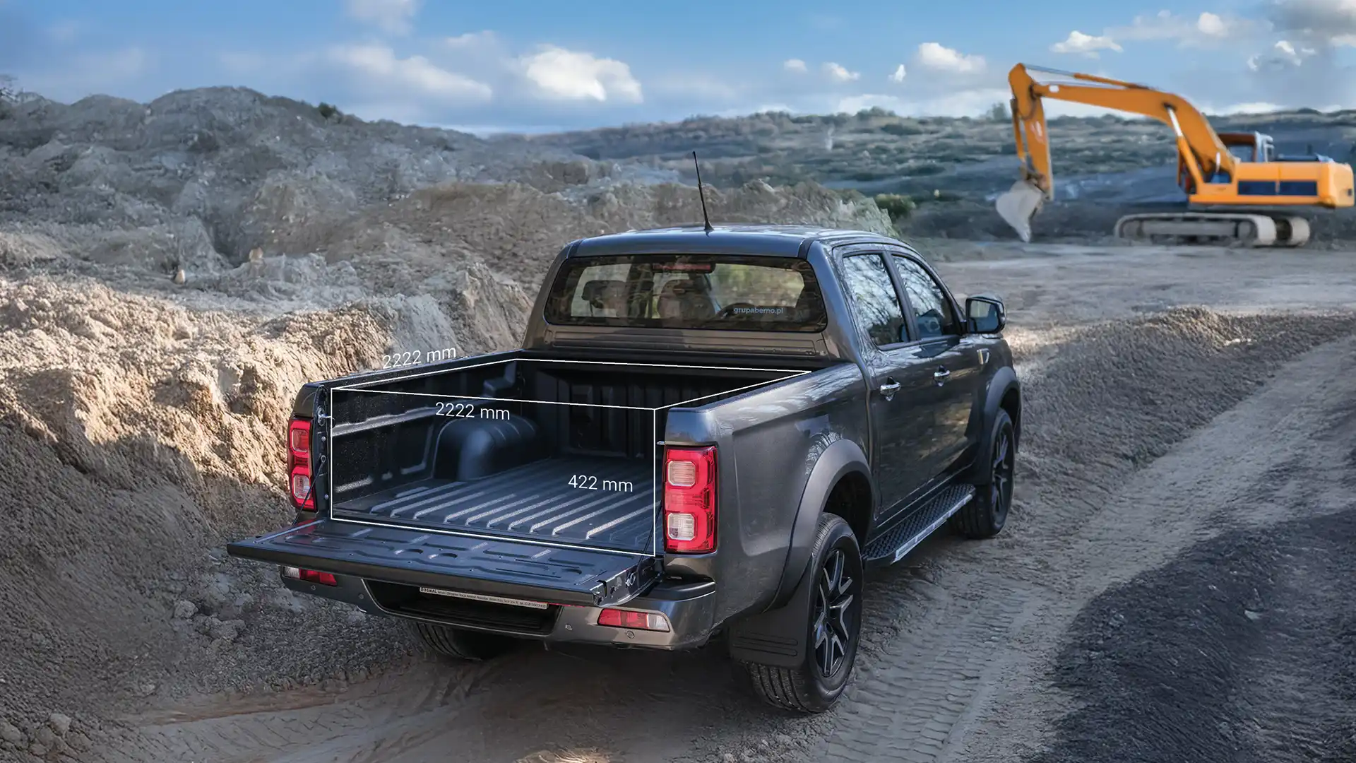 Skrzynia załadunkowa JAC T8 Pro pokryta jest specjalną powłoką odporną na korozję i zarysowania. To gwarancja trwałości i estetyki nawet przy intensywnym użytkowaniu. Dzięki temu świetnie sprawdzi się w pracy z ciężkim sprzętem czy materiałami budowlanymi.