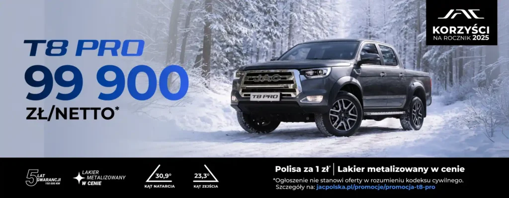 JAC T8 Pro to pick-up o wyjątkowych możliwościach terenowych, stworzony do pokonywania nawet najbardziej wymagających tras.